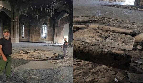 در ویدیو دیده میشود که سنگ قبر کاملاً تخریب شده و قبر حفاری شده و استخوانها از آن برداشته شده است.