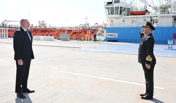 الهام علیاف رئیس جمهور آذربایجان روز دوم ژوئیه در مراسم بهره برداری از نفتکش "زنگیلان" که به دستور شرکت "کشتیرانی دریای خزر آذربایجان" در کارخانه کشتی سازی باکو ساخته شده است شرکت کرد.